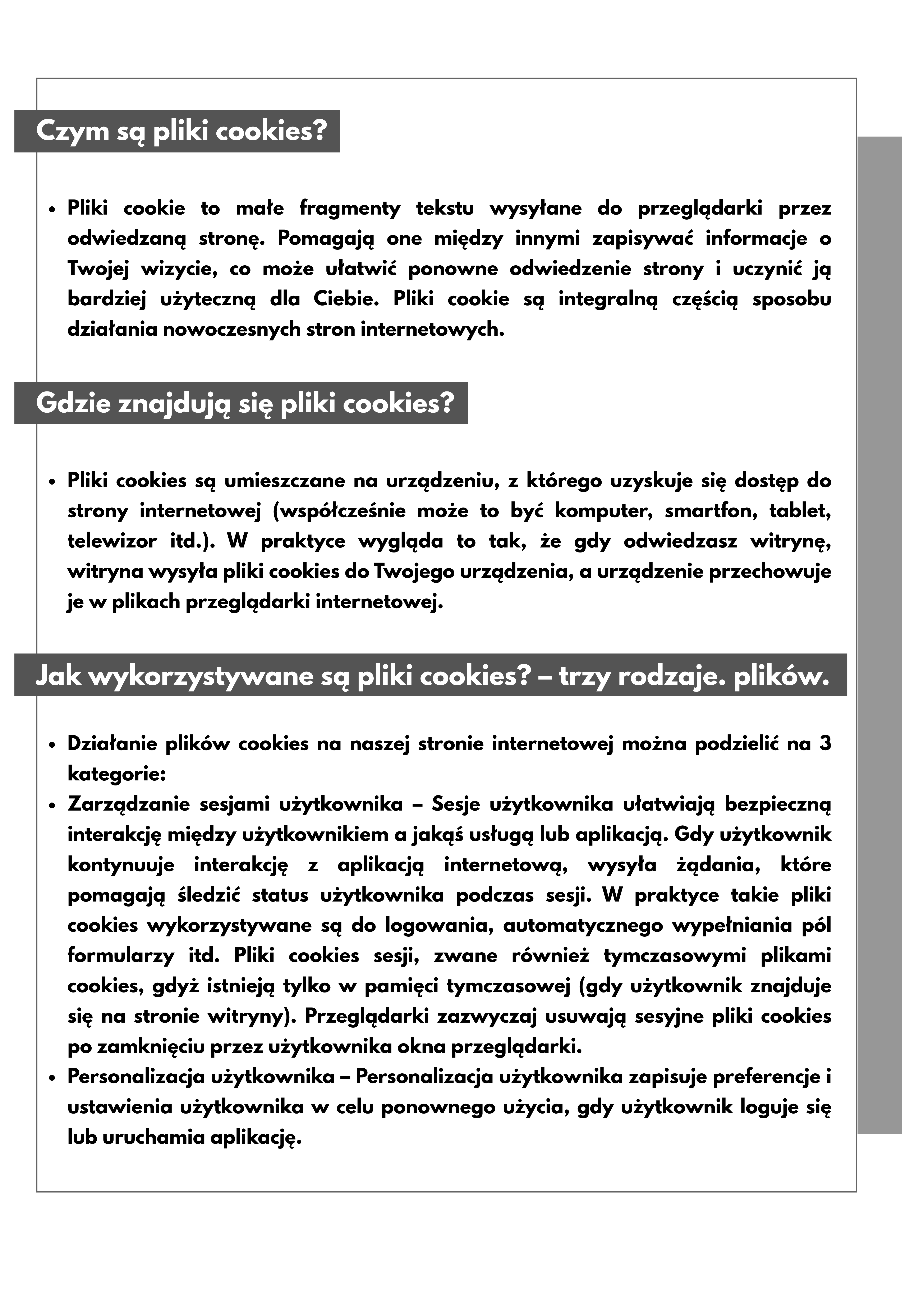 Korzystasz z naszej strony www strony zgodnie z ustawieniami Twojej przeglądarki lub urządzenia do przeglądania stron internetowych. Jeśli Twoje ustawienia zezwalają na zapisywanie cookies, będą one są zapisywane.
